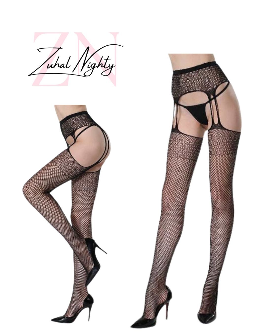 – Şık ve gece ortamları için ideal, fantezi siyah file belden vücut çorabı ile göz alıcı bir görünüm elde edin.